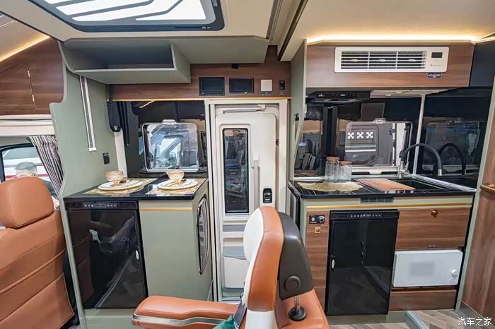 外部配置同样丰富,车尾底部有电子驻车支腿,车身外侧有风感电动遮阳棚、户外展板、外置抽拉灶、外置接水口和大储物仓等,满足户外生活所需。车内还配备了行驻一体的房车专用变频空调、5kw柴油暖风热水一体机,无论外界气候如何变化,都能在车内营造出舒适宜人的小环境。电力方面标配48V/200Ah锂电池、600w太阳能和5kw逆变器,水箱则标配了210L净水箱和75L灰水箱,精准的水位、电量显示,让用户随时掌握水电储备情况,合理规划使用,保障长时间旅行的水电需求 。