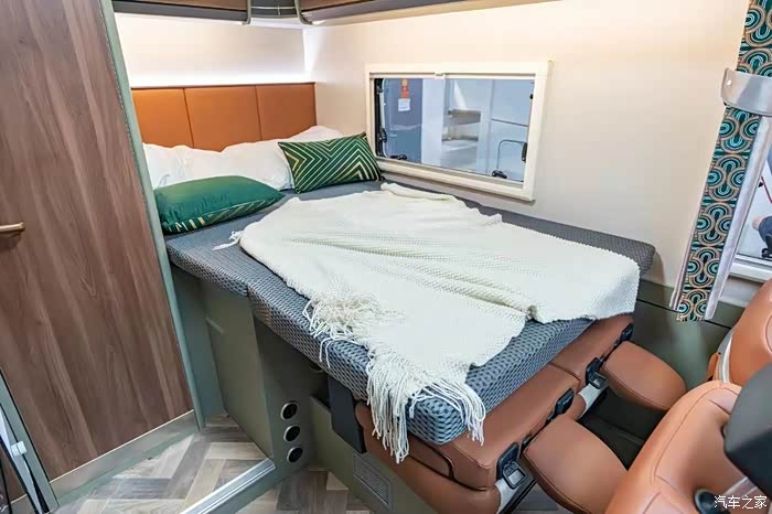 厨房区域紧凑有序,台面虽小却五脏俱全,电磁炉、水槽、微波炉、冰箱合理分布,橱柜抽屉提供充足收纳空间,即使在旅途中也能随时烹饪美味,开启舌尖上的旅行。车尾的固定床铺尺寸适中,床垫柔软适中,床头贴心配备阅读灯、充电插座,伴着车窗外的清风明月,让人安然入睡。卫生间采用干湿分离设计,淋浴喷头、马桶、洗手盆一应俱全,通风系统良好,有效保持内部干爽洁净,保障个人卫生与使用舒适度 。