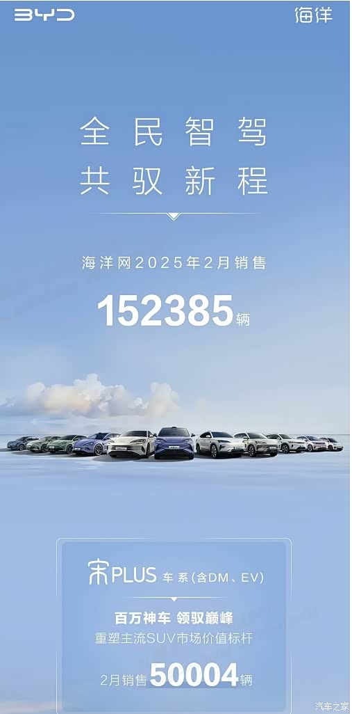 2025年2月,比亚迪宋家族再次以惊人的市场表现刷新纪录,单月销量突破12万台,稳坐中国SUV销量冠军宝座!这不仅是中国汽车品牌的骄傲,更是比亚迪技术实力与市场洞察力的完美体现。