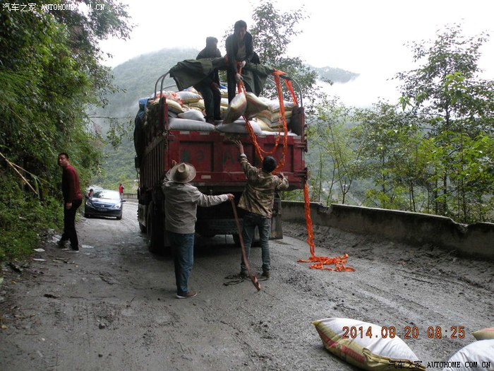 原来是一辆本地地大货车上地货物掉了,重新的装上固定好,用了近40分钟的时间。