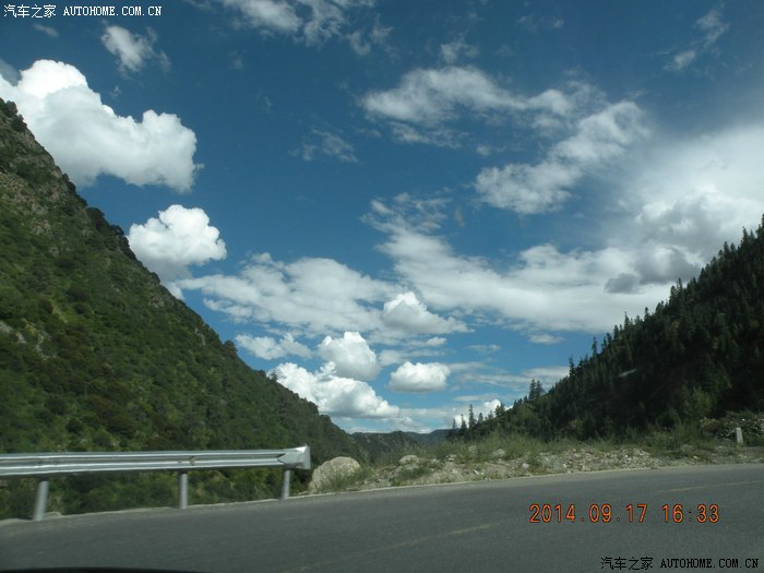 今天一路虽然一直是在走天险,把我紧张的是冷汗不断,可坐在后排的母亲一直都很沉着,说是一路都在念佛,佛主会保佑我们的,所以一点也不紧张!说来也是奇怪,出发前我天天看318的天气,从9月15日到9月22日天天是阴雨绵绵,中雨、雷阵雨看的我是心惊肉跳,愁肠百结,可等我们踏上318以后,虽然晚上还是会下雨的,但是到了白天就是晴天,最多也就是云层厚一些,难道这就是心诚则灵?!