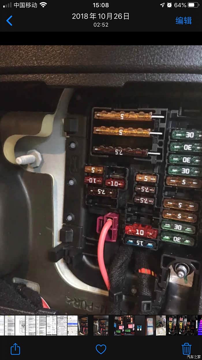 目前找到后面保险盒里的455.458好像是acc电源。456是空的。457好像不是acc。现在记录仪接到455测试好像可以用。但455是35A的。合适不?458是15A的。记录仪说明说acc最好接7.5-10A的。