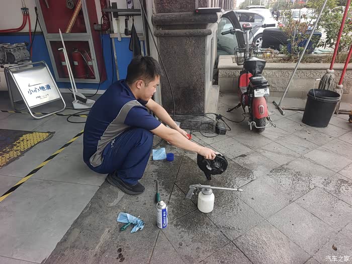 下午早一点下班,来到了百顺养车店里。店里的小冯师傅做事情非常的认真。清理蒸发箱,还把空调的风机拆了下来。里面有好多的灰尘,一点一点很耐心的清理,把风机清理的像新的一样!这一点对客户负责的态度非常值得表扬。