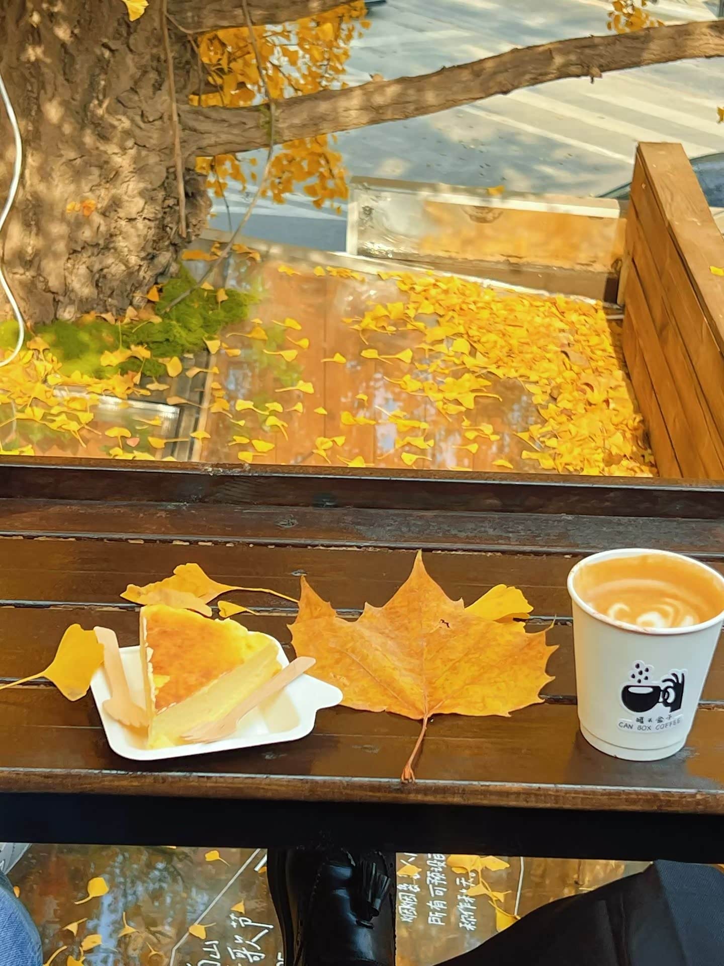 我挑了张靠树的桌子坐下,点了杯拿铁,刚端上桌,一片小巧的银杏叶就轻飘飘落在拉花上,金黄的叶片配着奶白色的花纹,成了秋天独有的装饰。风一吹,更多银杏叶簌簌落下,铺满了桌面,也落在孩子堆起的树叶小堆里。他捧着满满一捧银杏叶朝我跑来,笑着把“金扇子”撒向空中,阳光里,金黄的叶片围着他飞舞,那一刻,孩子的笑声、秋风的轻响、咖啡的醇香,交织成了最动人的秋日乐章。