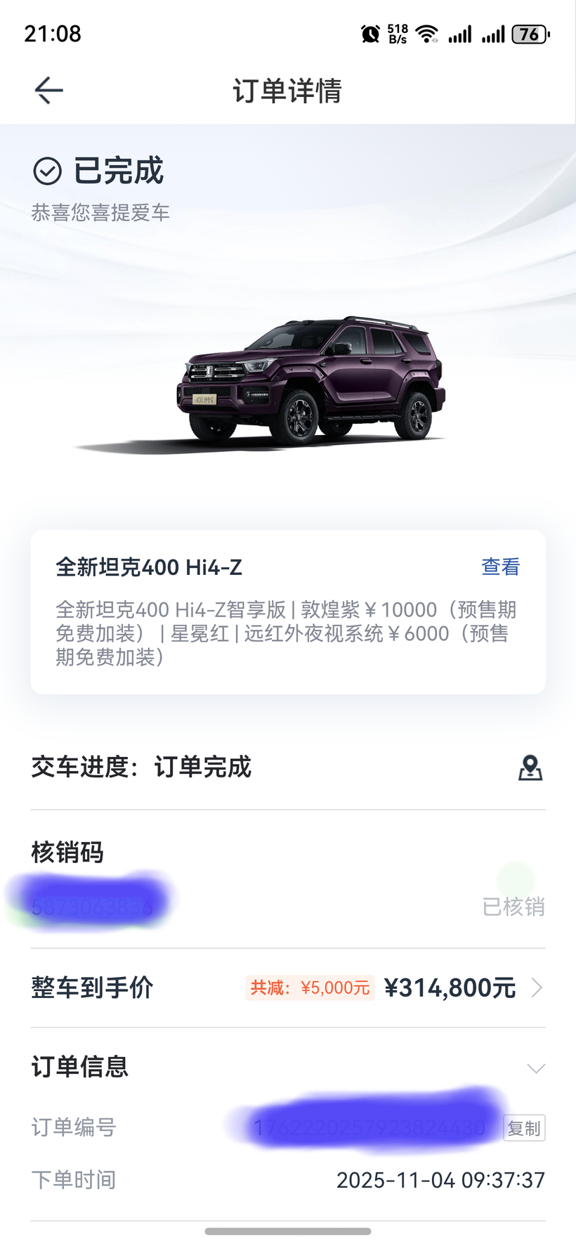 车友们,我是11月21日提的坦克400HI4Z,至今已接近俩月,今天利用此贴来讲讲我的用车感受,跟已提车的朋友交流下用车心得,给观望的朋友一个购车参考。