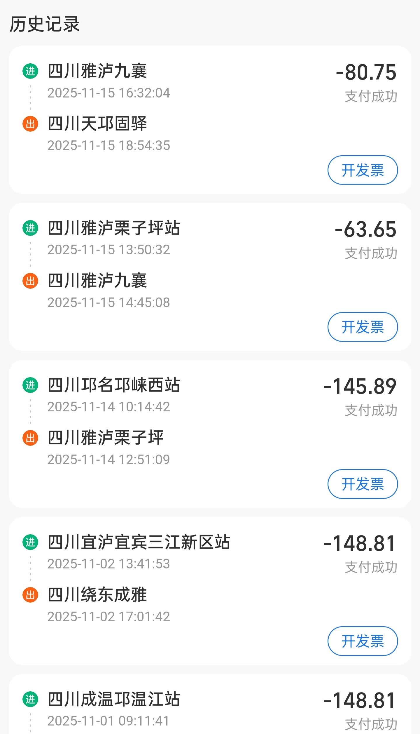 长途主要跑贵州、宜宾、川西等地方,拉了一下ETC记录,全年高速费1853.87元。