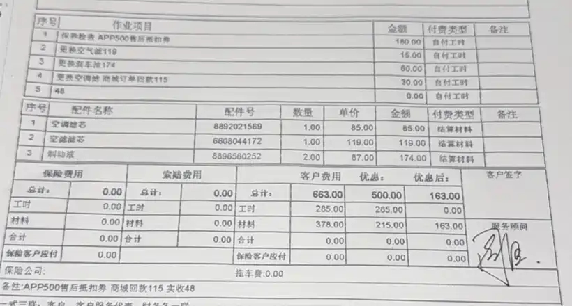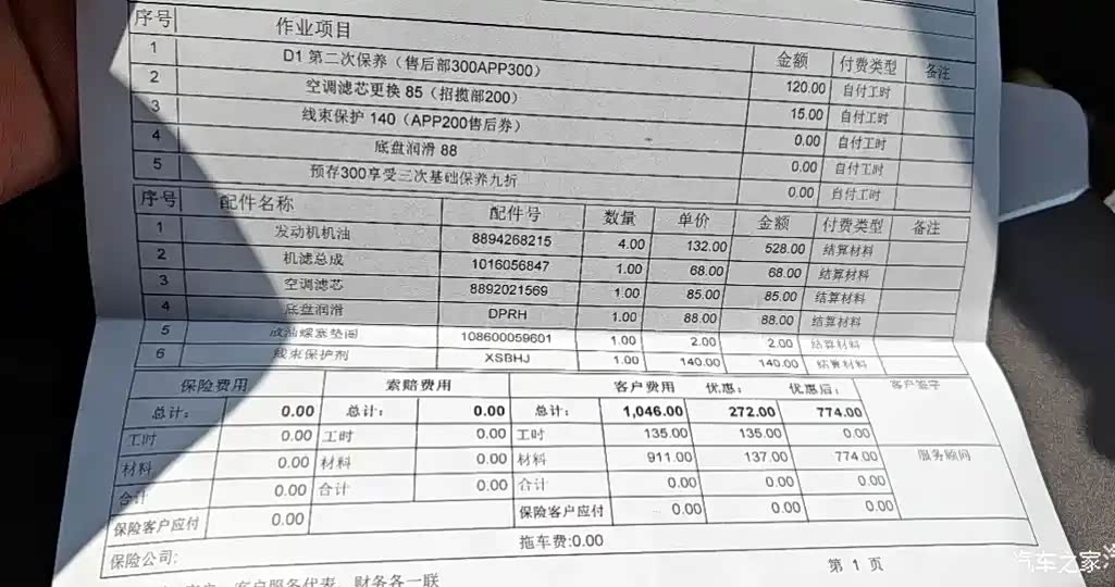 2025年保养了两次,都用了券。二保用券后274元,三保48元,共计322元。