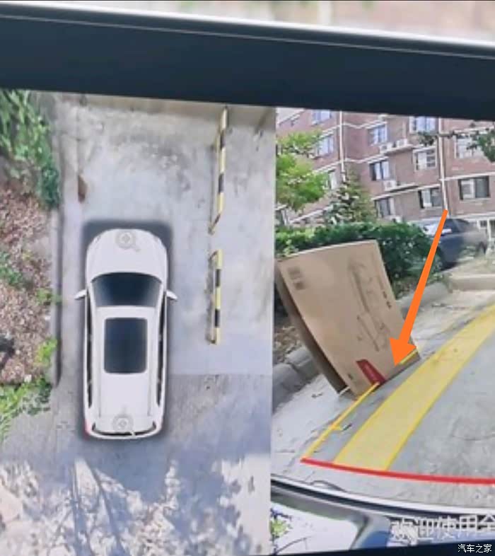 这个图是二维模式,前进。显示前面有个纸箱子。继续前进,纸箱子已经虚化看不见了。这就是为啥轨迹线看见能过去,结果到了跟前剐蹭的原因。离近了图像虚化了。也就是说根本不是全景360,四个角都是虚拟的。离近四个角,根本不是真实的图形。三维模式更是直接不现实有纸箱子。三维模式下,左上角的纸箱子根本不显示,不显示。