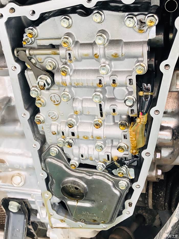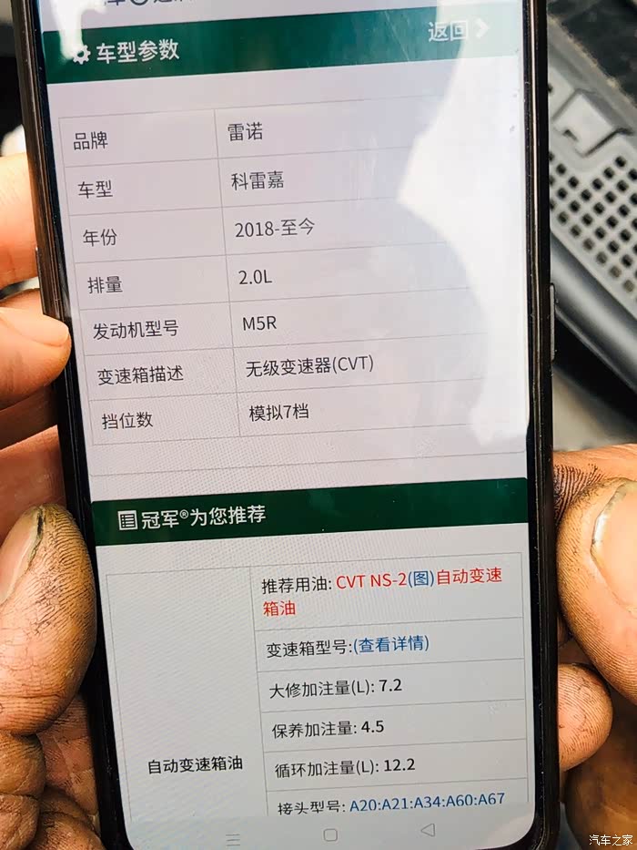 首先我不是科雷嘉车主,车是我同学的,公里数不多才50000公里。我的车是铃木锋驭,变速箱也是用的日产的,据说这个变速箱铃木也有少许股份。同学最近告诉我想换变速箱油,恰好我以前换过,所以就告诉他需要买些什么配件,然后约着今天去了维修店换油去了,换油其实很简单,重要的有两个点,第一个油和配件一定要买好的,二个是,一定要找维修店有换过日产变速箱油经验的店,这东西的脆弱我想大家都应该了解,现在我把换油的经过分享给大家,做个参考。有问题的可回复,我看到第一时间会回复你的。平板编辑的将就看吧。。。。地盘防护做的不错,比铃木厚道放油螺丝拆下来因为公里数比较少,不经常跑高速,油看起来比较清亮,我换的时候也是五...