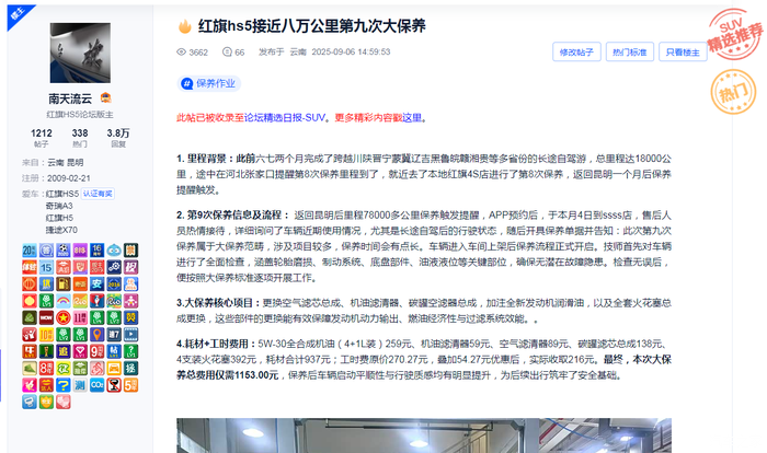 看看我的8万公里第九次保养花1153.00元