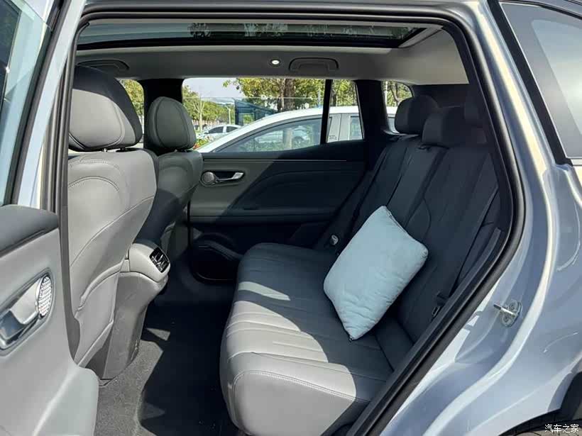 宽大厚实的座椅,宽敞的空间,还有一块超大全景天窗,真的很舒服。而且我对比过好几款紧凑级SUV油车,埃安i60的空间优势都挺明显的。也庆幸当时没买轿车,那后排座椅看着大,实际高度很矮,像小板凳一样,要是坐长途,肯定很累。
