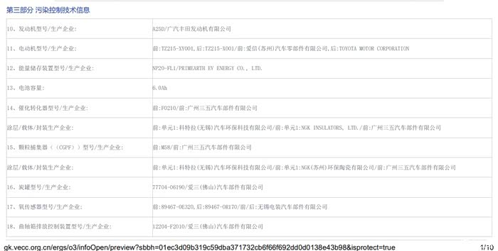 广丰官网的车辆环保信息里面最新的混动已经带有颗粒捕捉器M58