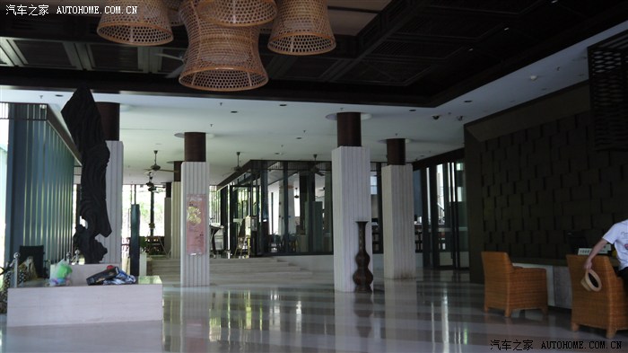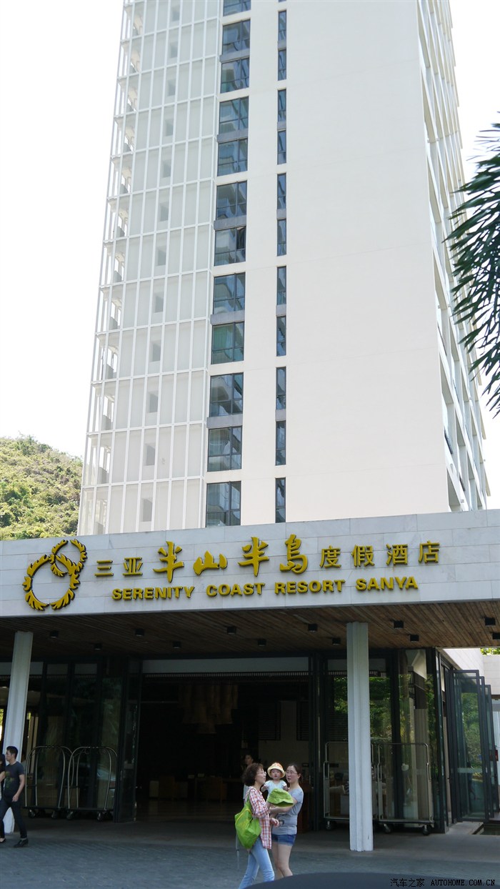 酒店大门,装备出门坐酒店的电瓶车去海滩。