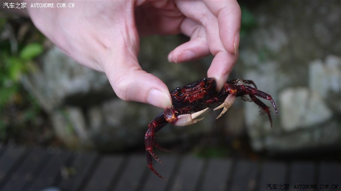路上岩石上逮了一只螃蟹,结果一肚子小螃蟹。