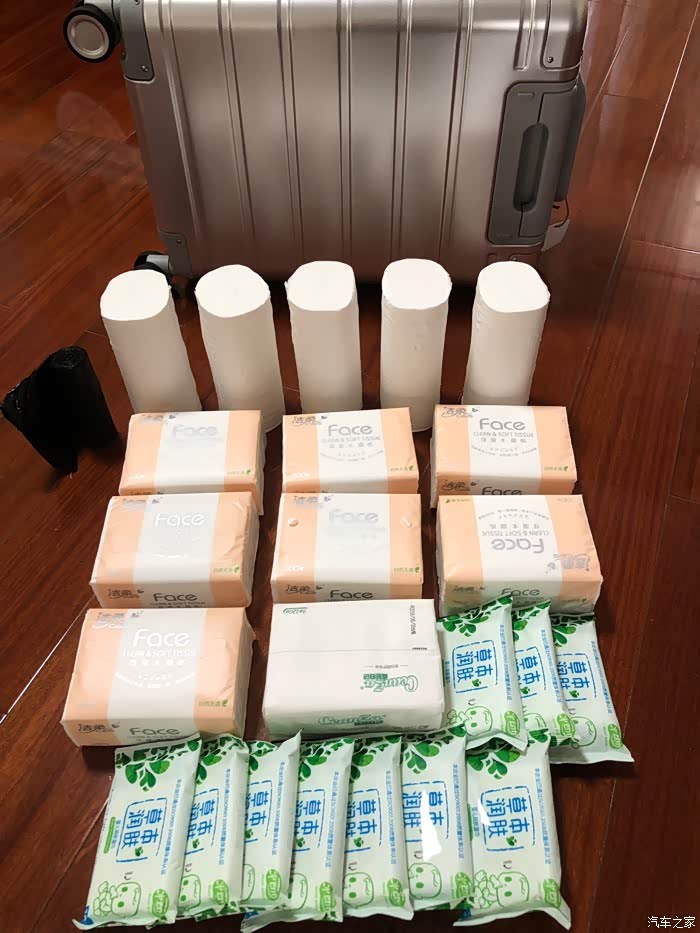 装三个20寸拉杆箱,四箱子红牛、40瓶一箱医用%5的葡萄糖、两箱矿泉水、一箱牛奶、两个保温瓶(1.5升3.0升),一箱健力宝、运动健身包三个、工具箱一个(内装拖车绳、气泵、应急电源、五金工具、机油、防冻液、四瓶玻璃水、12瓶燃油宝、等) 10瓶氧气。30双一次性袜子、15个一次性床罩、枕巾,七卷卫生纸、七盒面巾纸、20袋湿巾、等。