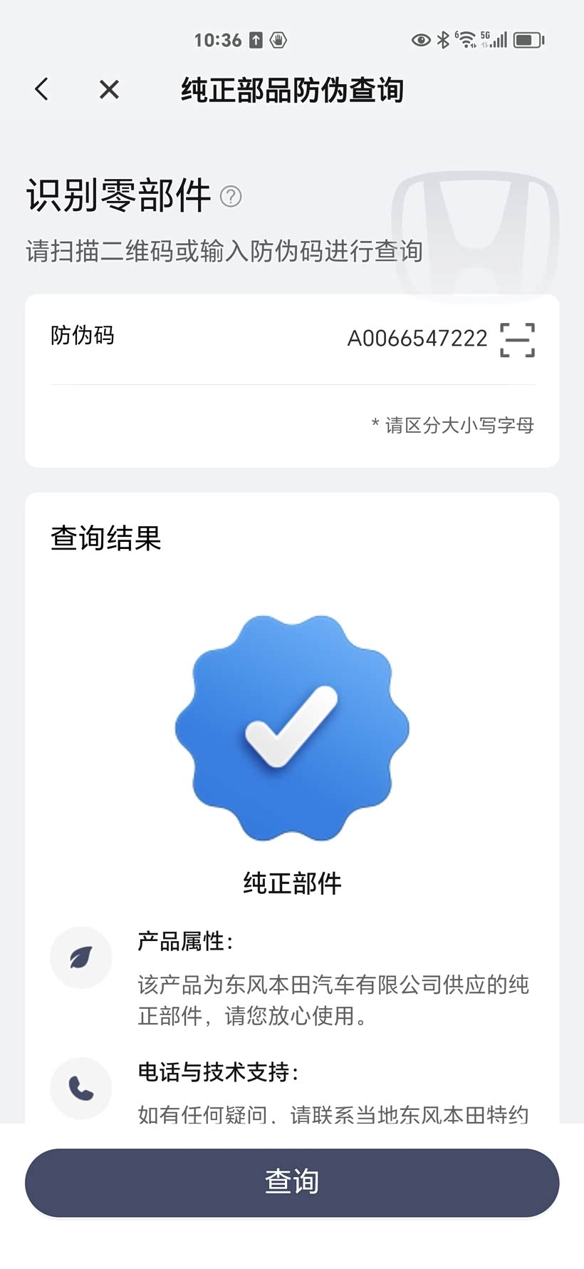 淘宝专门卖本田原厂配件店铺诚信可靠,发来的机脚垫可以从东风本田APP上查询到是纯正配件,用着放心、用的长久、品质过瘾。重新发来的机脚垫等车再行驶一段里程后进行更换。