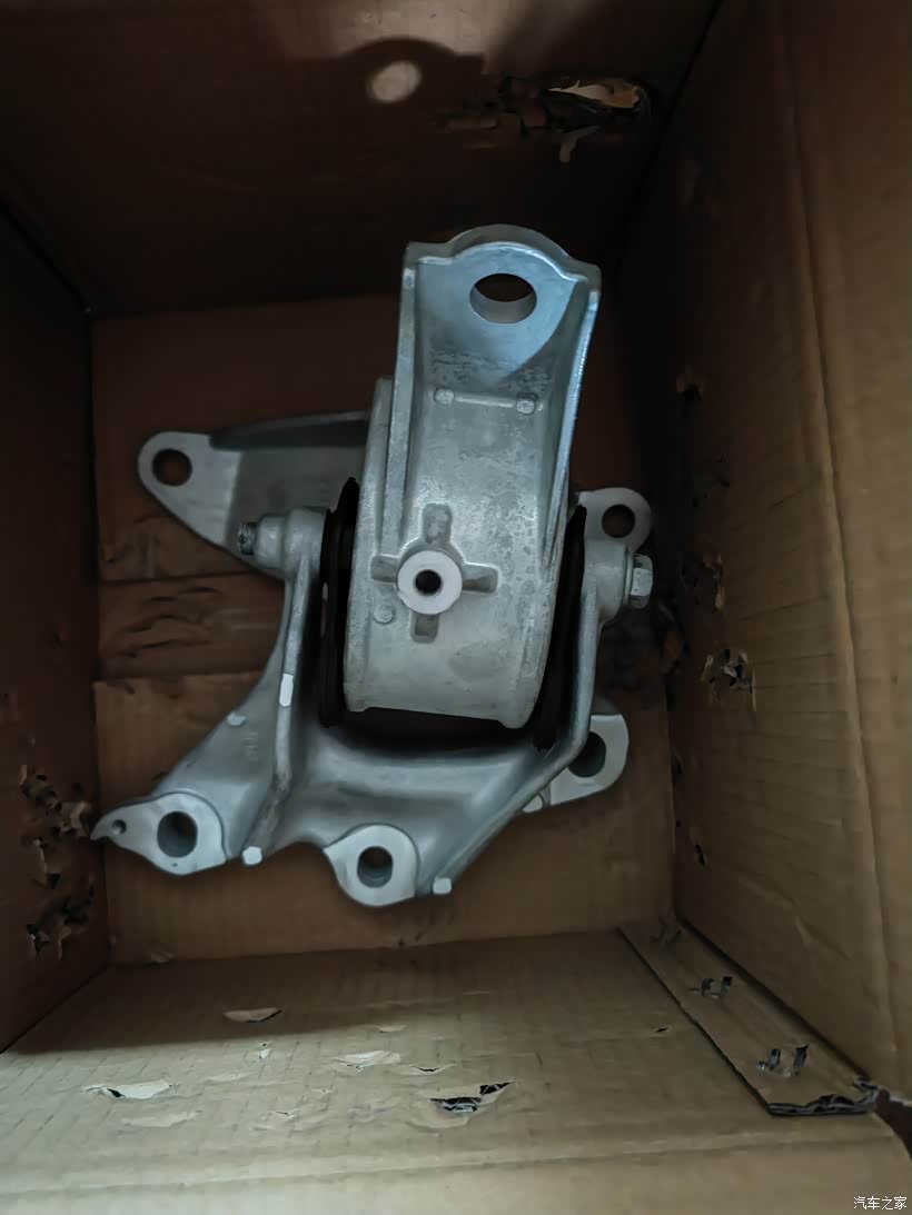 收到配件后赶紧去汽修店安装,4个机脚都更换要拆发动机舱里的如进气管、电瓶、防冻液壶等许多东西,比较麻烦。把原车机脚拆卸下来准备安装新机脚时,才发现发动机右机脚和变速箱左机脚型号不对、无法安装,立刻联系店家是发错货了,店家说马上用顺丰空运发原厂原车机脚垫,并发原车机脚垫图片进行了确认。从拆卸下来了原车机脚看,只有上扭杆机脚垫开裂,其它3个机脚垫无漏油无开裂,为了不影响用车,更换了上扭杆和下扭杆机脚垫,把拆卸下来的原车发动机右机脚和变速箱左机脚垫又安装回去,目测应该可以继续使用一段时间。安装好后试车,冷车启动没有了抖动和座椅颤抖,看来上扭杆机脚开裂是造成抖动的主要原因。