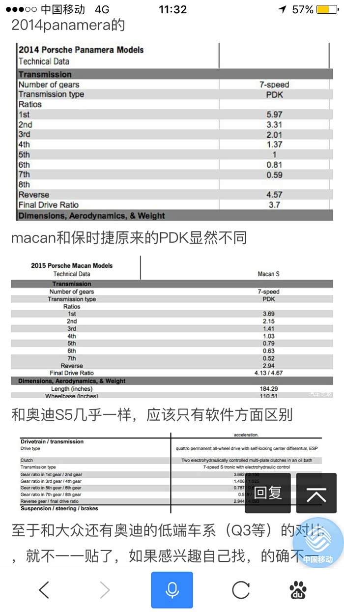 确实,键盘侠感觉自己已经可以代表保时捷来发布信息了。。。我就说到这了,实在无语,我回贴回那么多有营养有价值的东西,这俩哥们根本没看一看就,还在这儿充当保时捷设计师。。。。。。。真无语。我只想说,这俩兄弟,根本就不可能是S车主。。。什么dl501,带这个波箱的奥迪也绝对没开过。。。。。。按他们逻辑,卡宴肯定已经不算纯血保时捷了。。就算带s的,发动机保时捷的,波箱zf的啊。帕拉梅拉的pdk结构也和之前的其他车型的不同,也不是纯种pdk?也不纯。什么叫纯?zf共同设计代工的才是?zf主打AT好吗?我真觉得键盘侠真的牛逼。东拼西凑各种怼捕风捉影的东西。齿轮比调的接近,支持扭矩范围能包的住,这俩波箱就划...