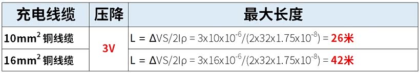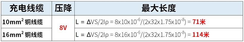 使用专用供电电路时,电压降主要集中在充电供电线上。