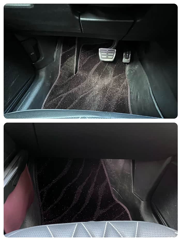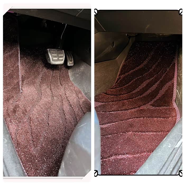 这款枣红色星空毯质量优于绒毯和雪妮丝,它是采用纤维绒面+PE材质,依照我先前地垫版型结构由电脑立体裁剪而成的丝圈脚垫,精准贴合地板而浑然天成。最大的好处就是增添了冬季车内的暖色调,静音而舒适,脚感柔软而厚重,可以缓解驾驶疲劳,还有吸污藏污的功效。