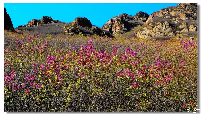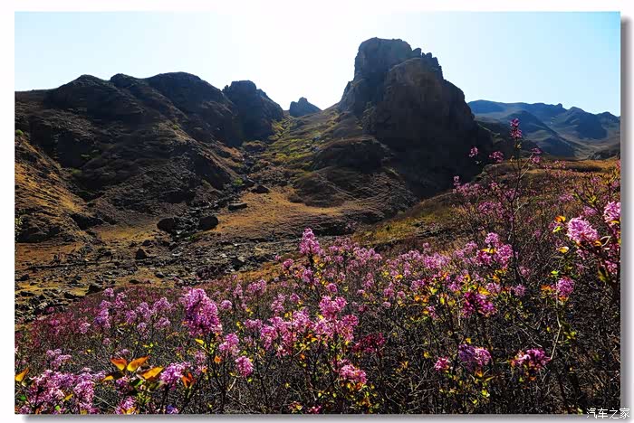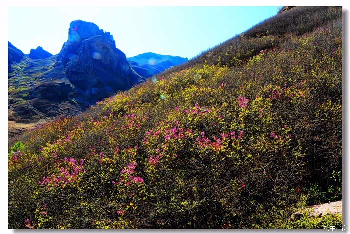 按照事先筹划,上午没有直接回家,首先到四家子东南方向的清泉谷进行游览,早就听说这里杜鹃花开得好,想拍些杜鹃花图片。清泉谷和老家一样,都是坐落在燕山余脉——努鲁尔虎山内蒙古一侧,另一侧是邻居辽宁省朝阳市。清泉谷最著名的是杜鹃花,这里气温比赤峰北部温暖,感觉到杜鹃花的盛花期已过,在游览的同时顺便挑选拍摄了些较好的杜鹃花。10点多钟已没有拍摄的必要,决定开车返回。
