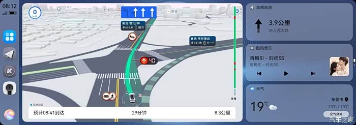 但即使用苹果手机直接carplay投屏的车友,也是同样的效果,异形屏无法完全填满的,且投屏区域分辨率会有稍微下降,这主要是原车9k屏分辨率实在太高了。