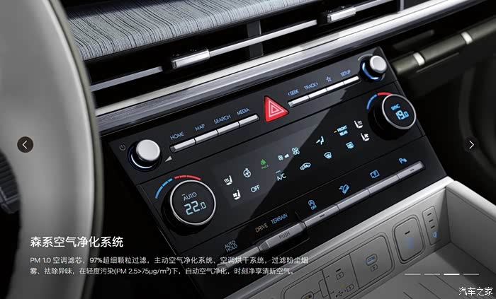 除此之外,胜达的主动空气净化系统森系空气净化系统包含PM 1.0 空调滤芯,97%超细颗粒过滤,主动空气净化系统、空调烘干系统,过滤粉尘烟雾、祛除异味,在轻度污染(PM 2.5>75μg/m9)下,自动空气净化,时刻净享清新空气。