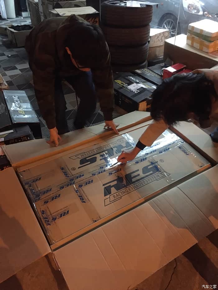 车子收回来就带侧裙、牵引绳、尾唇、尾翼、门把手和后视镜碳纤维盖子。。。在车房和Ken哥哥大雕哥哥把侧裙和尾唇拆了,九牛二虎之力啊,三人一齐扯侧裙,然后把侧裙扔了,看不下去,车上沾满了黑乎乎的玻璃胶(在这里强烈建议大家,不要用玻璃胶粘东西在车上!!!)。