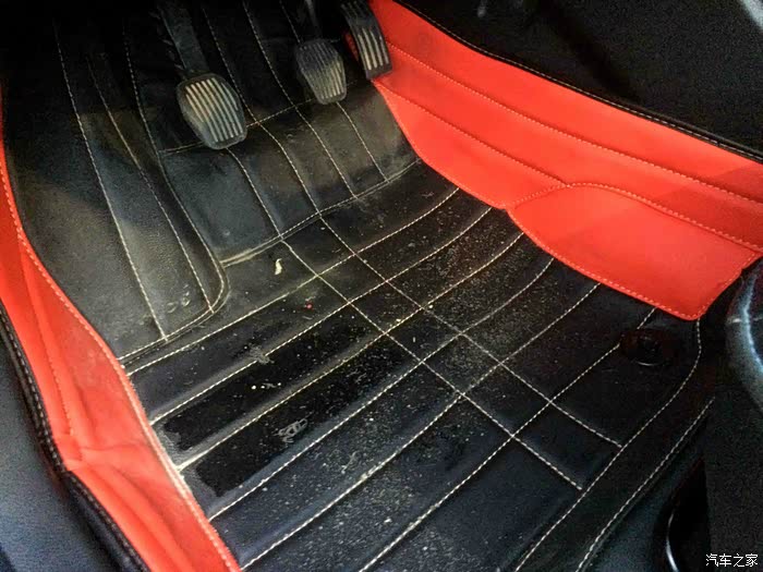 可以看到丝圈脚垫是非常脏的哈,拿下来后皮革也是非常的脏,掉满了泥土颗粒