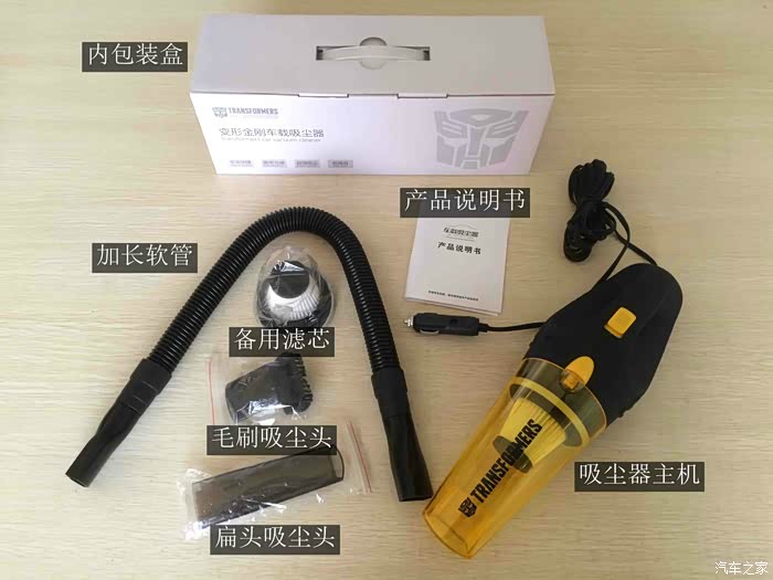 盒子两边有规格说明,以及简单的介绍和申明,我们需要注意的是,车载充电器的功率是否能满足吸尘器工作,这款吸尘器的功率是72W,一般车辆使用是没有问题的。