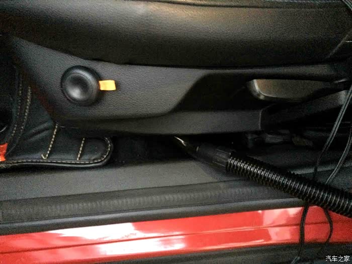 类似这种缝隙与座椅间的缝隙都需要运用加长软管来吸尘,可以把吸尘器放在椅子上,然后拿着软管伸进缝隙去吸