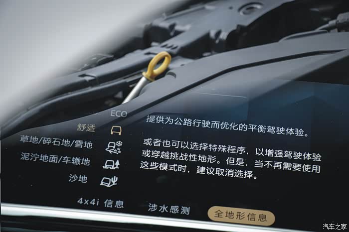 第二代全地形反馈适应系统可提供6种(5地形+1自动)地形和驾驶模式,在新增的自动模式下,可根据不同路况自动匹配合适的地形模式。