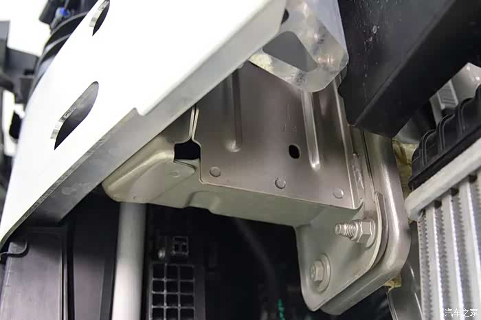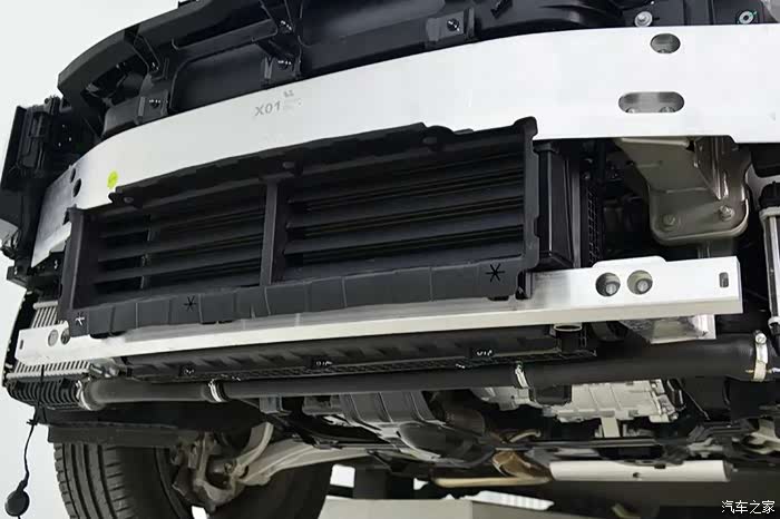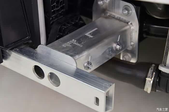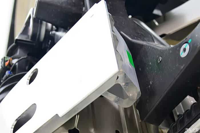 副防撞梁吸能盒同样是铝合金材质,固定在副车架的前端,在碰撞中也能参与吸能。