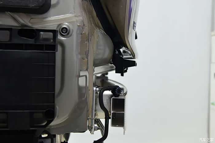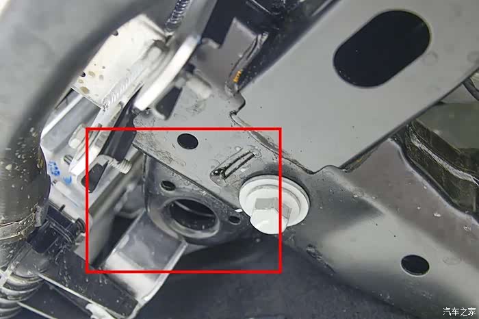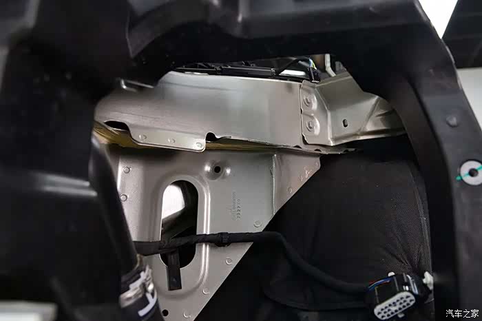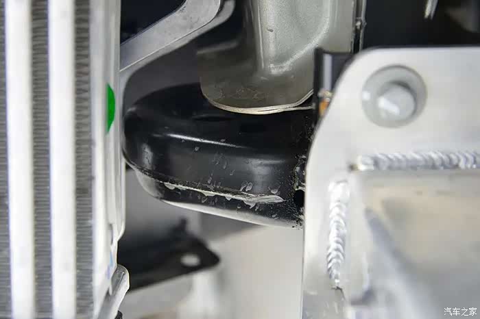 副车架前端各凸出一个弧形凸起,同样也是为了提高偏置碰撞测试成绩的。