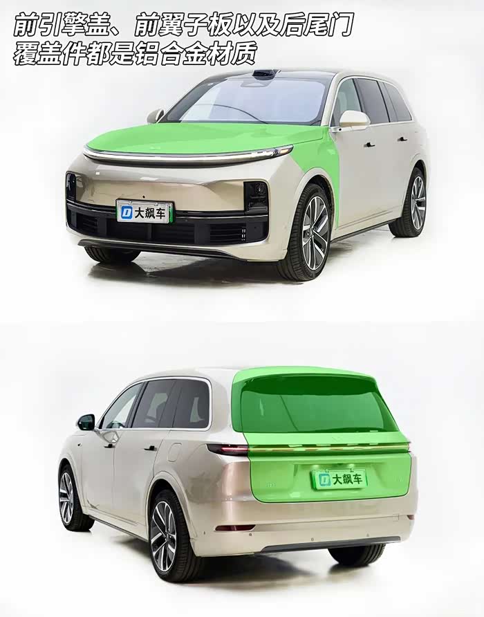 这辆车的引擎盖、前翼子板,后尾门的覆盖件,都是铝合金材质,其余是冲压钢板。