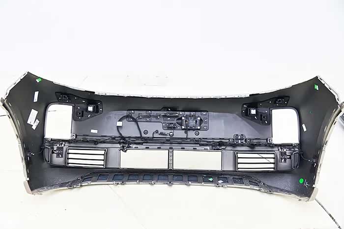 前保险杠用料厚实,遍布各种传感器、摄像头。