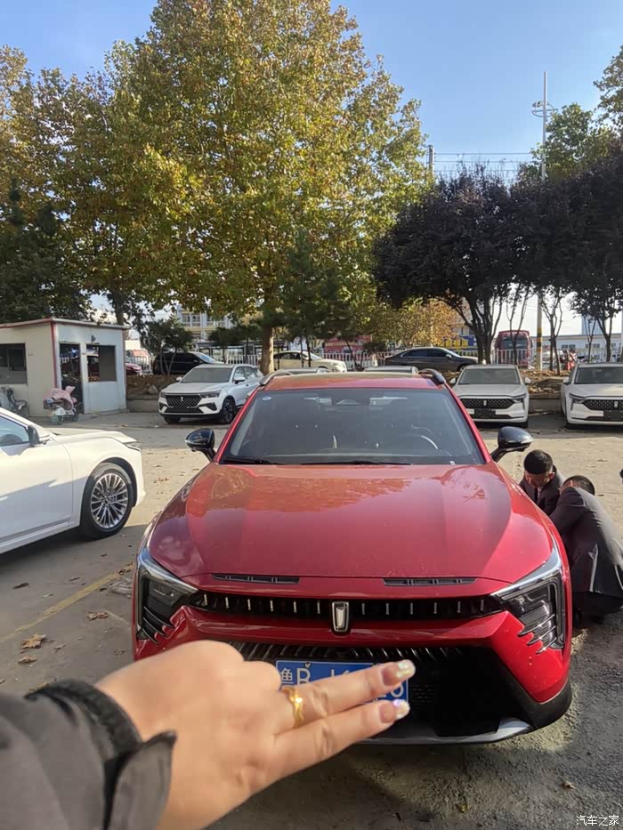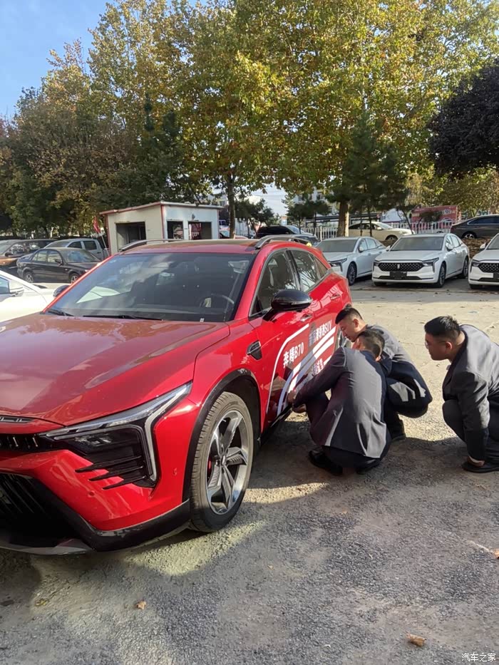 去的时候正好碰见很多销售顾问在店门口,不知道的还以为都是来迎接我们的呢,凑近一看,原来是在这儿贴车贴呢!!!