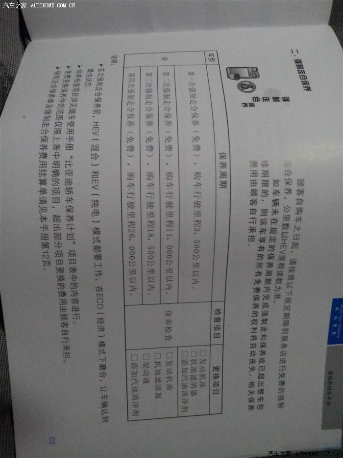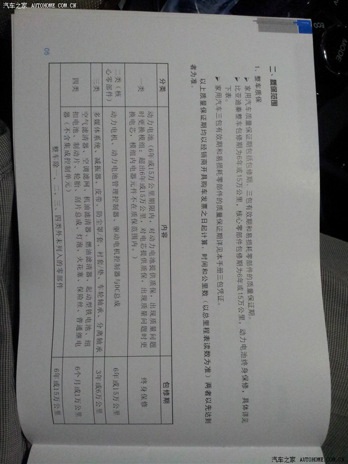 秦的说明书很多人都看到过,但秦的“三包凭证及保养服务手册”一般都是车主才有的,平时一般是不动的,如果想起来用它不是保养的时候就是出问题的时候了。其它不多说了,先上图: