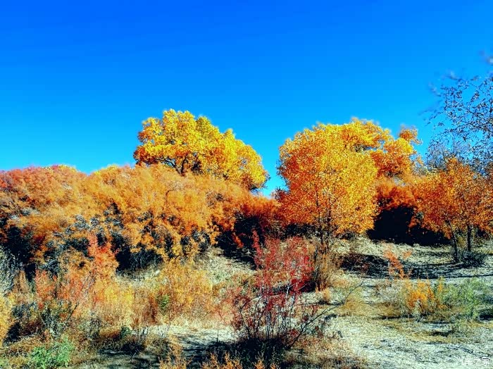 行:额济纳胡杨林附近的景点,除胡杨林外,居延海离胡杨林五十多公里,黑城怪树林离胡杨林二十多公里,策刻囗岸离胡杨林八十多公里,这次我们沒有去,感兴趣的朋友,在看完居延海的日出后,可以去转转,那离居延海也就三十公里左右了。