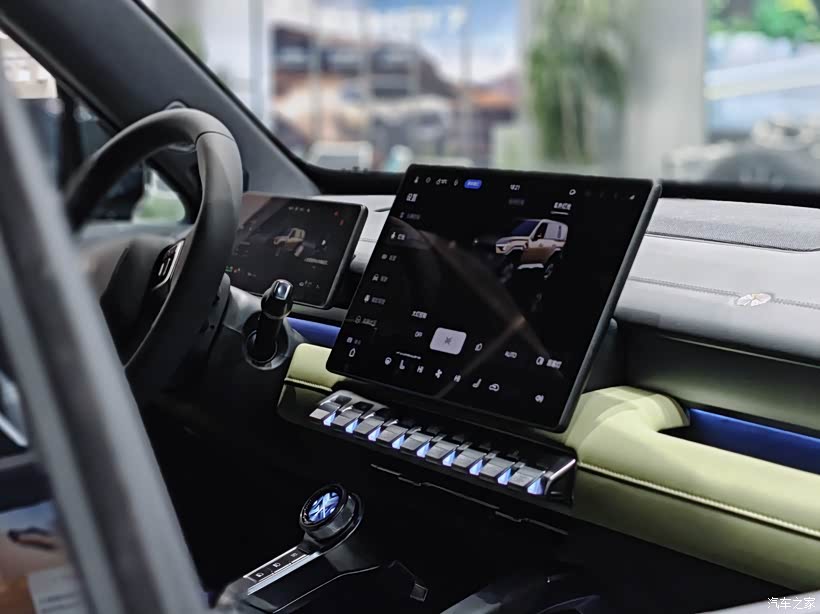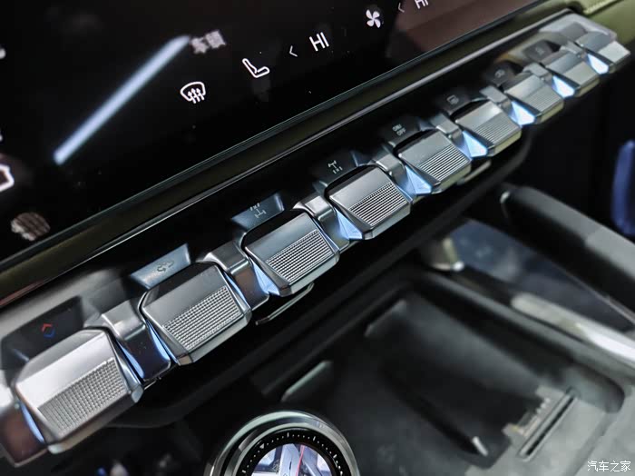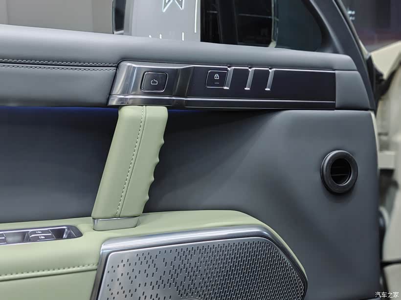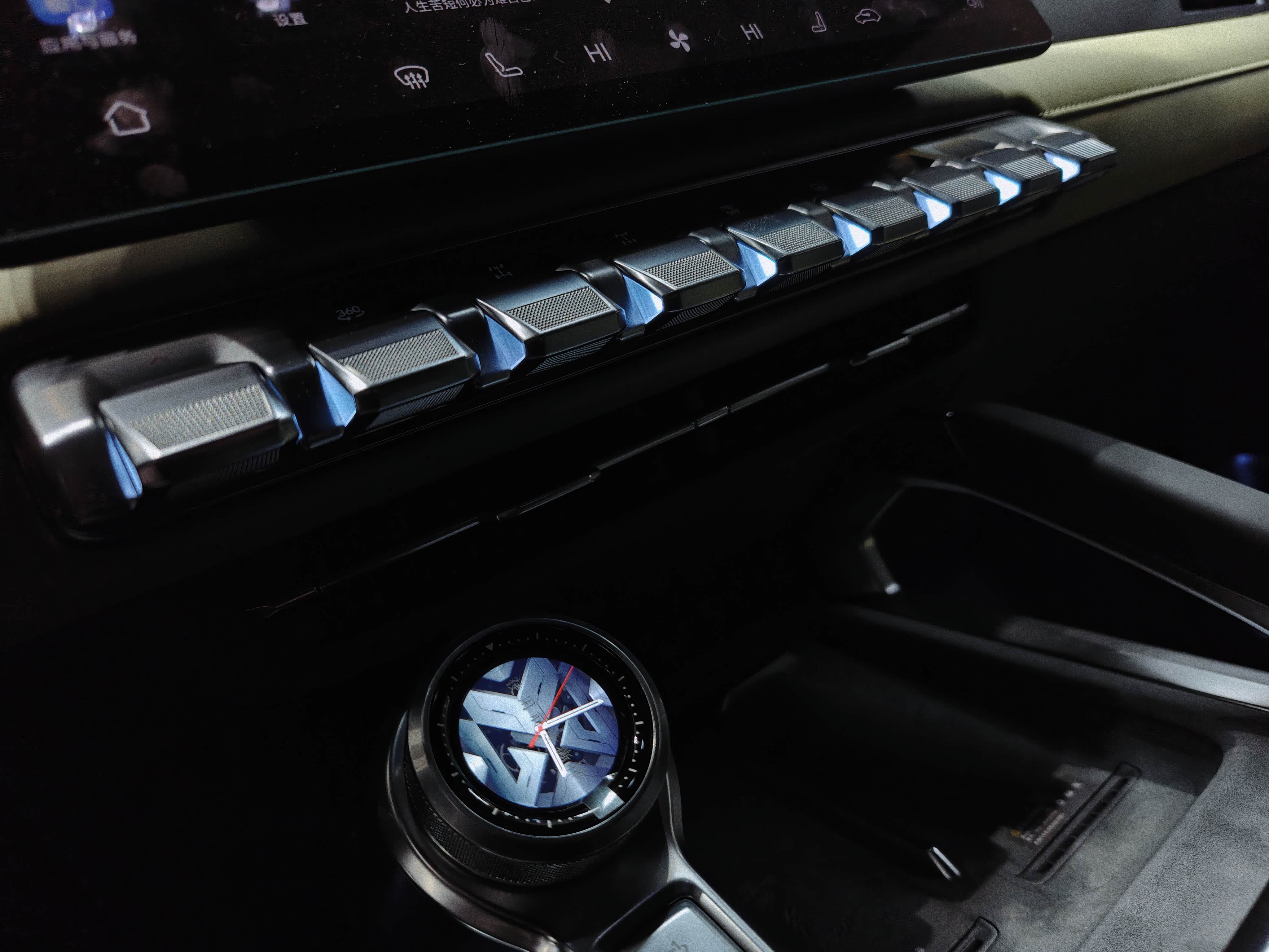 坐进车内,“先锋机甲”理念扑面而来。中控台线条平直硬朗,大量使用金属质感材质。金属脉冲按键手感沉稳,伴随呼吸光效;灵感源于战斗机的飞航旋钮,可一键切换9种驾驶模式;而最让我印象深刻的,是造型如手枪握柄的车内门把手,关门时那一声清脆的“上膛”声,将硬派仪式感拉满。