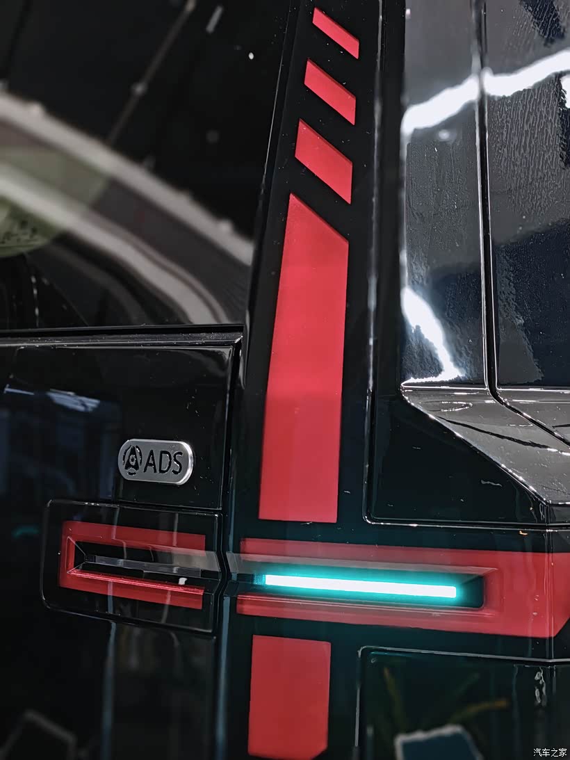 3、车尾的“剑指苍穹2.0”超红LED尾灯,点亮时如火箭升空,极具科技未来感。