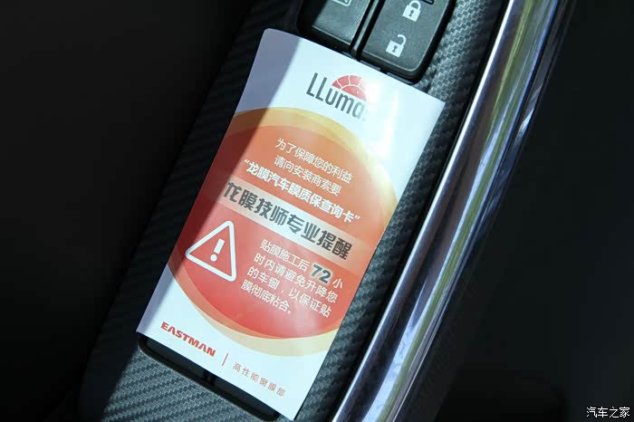 车窗上的禁止开窗贴纸也是防止车主不小心贴膜后打开车窗损坏贴膜的最好方法,贴完贴膜后最好一周内不要打开车窗,防止贴膜没有完全粘住导致升降车窗时贴膜损坏,商家也提醒,如果贴膜发现问题也不要自己随便处理,最好把车直接开到施工的店里让师傅帮忙处理,这点也是怕顾客自行损坏贴膜,非常细心