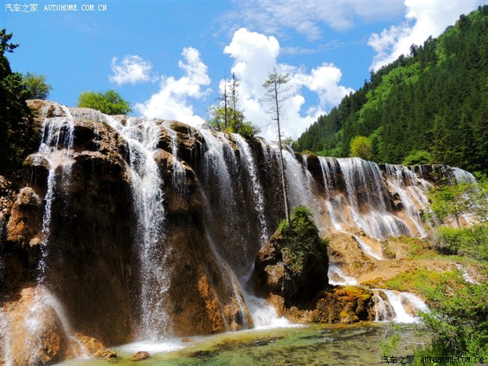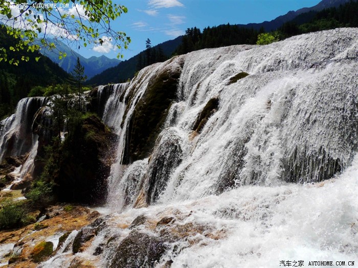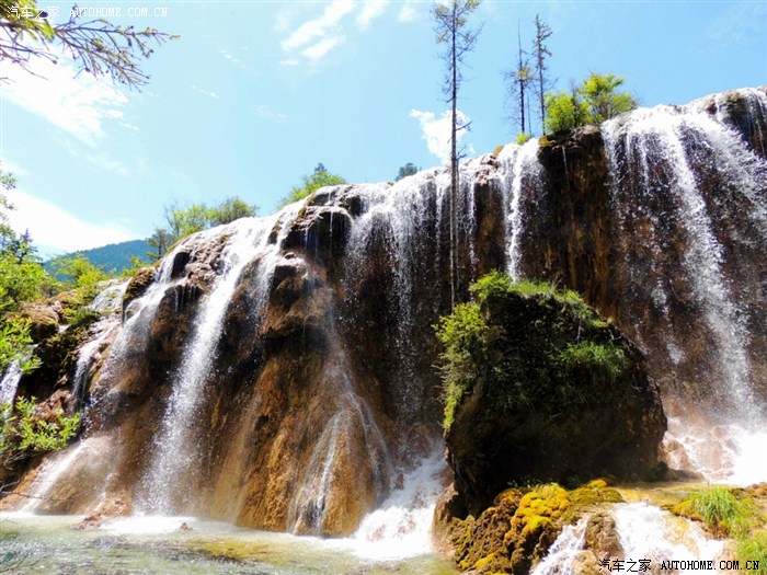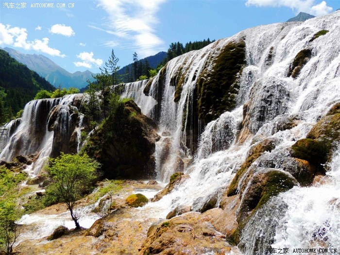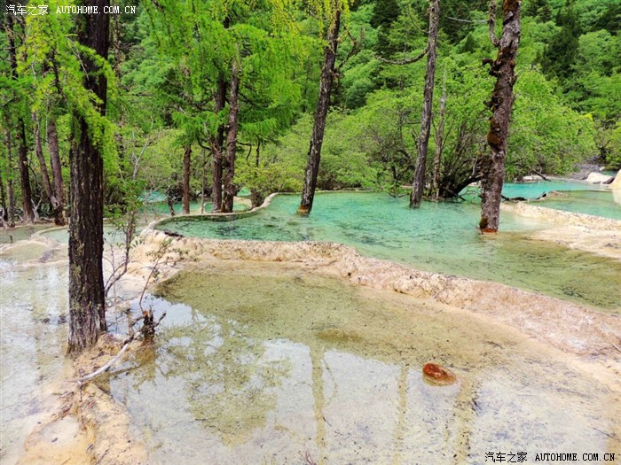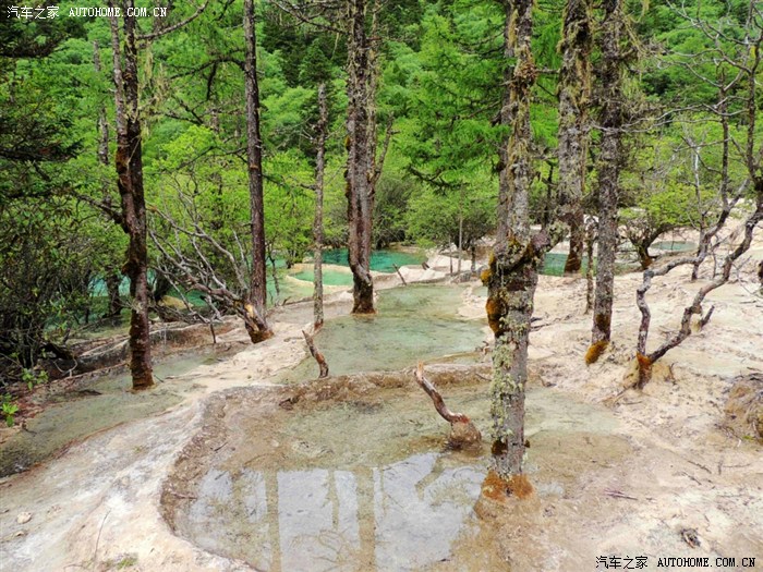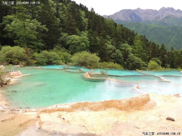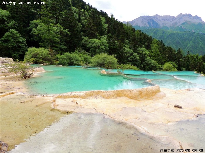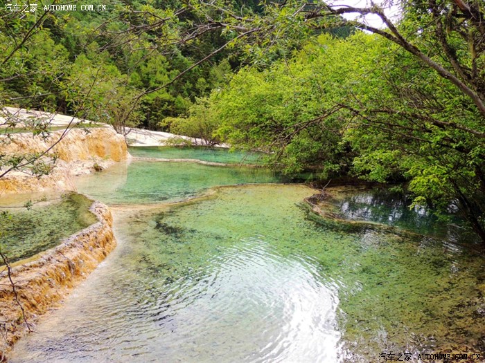 黄龙、九寨沟都位于四川省阿坝藏族羌族自治州,海拔在2000m以上,保存有大量第四纪古冰川遗迹,遍布原始森林,沟内分布108个湖泊,地下水富含大量的碳酸钙质,湖底、湖堤、湖畔水边均可见乳白色碳酸钙形成的结晶体,蓝天、白云、雪山、森林、尽融于瀑、河、滩、缀成一串串宛若从天而降的珍珠水乳交融,美不胜收。