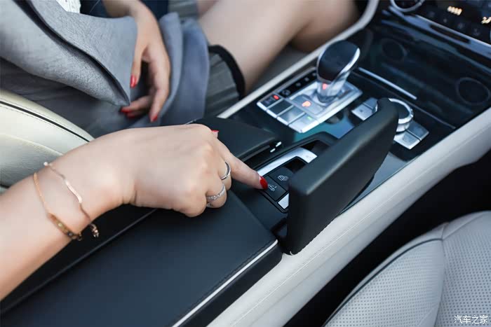 敞篷开关在扶手的最前端,按键隐藏在一个盖子的机构下,