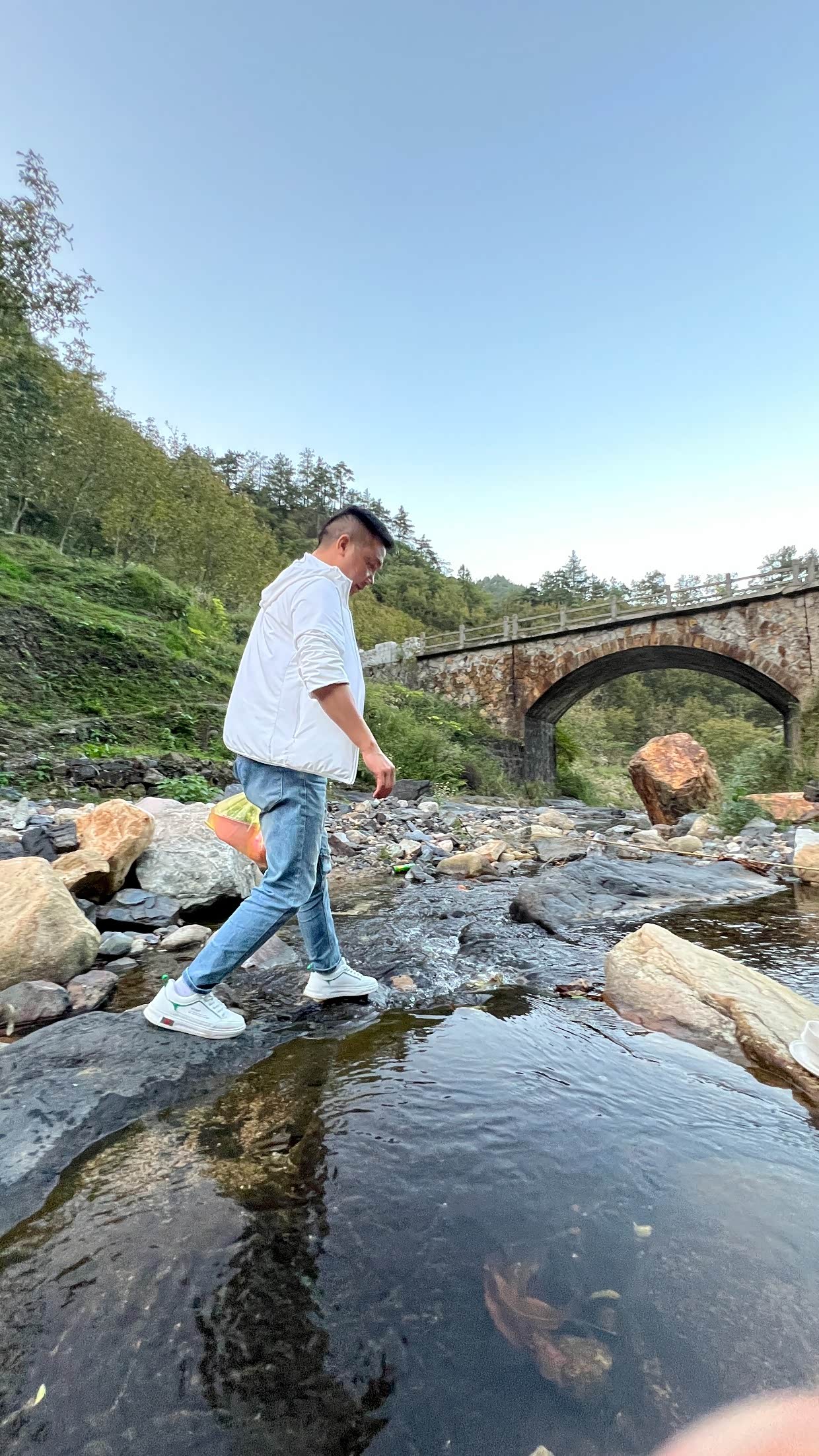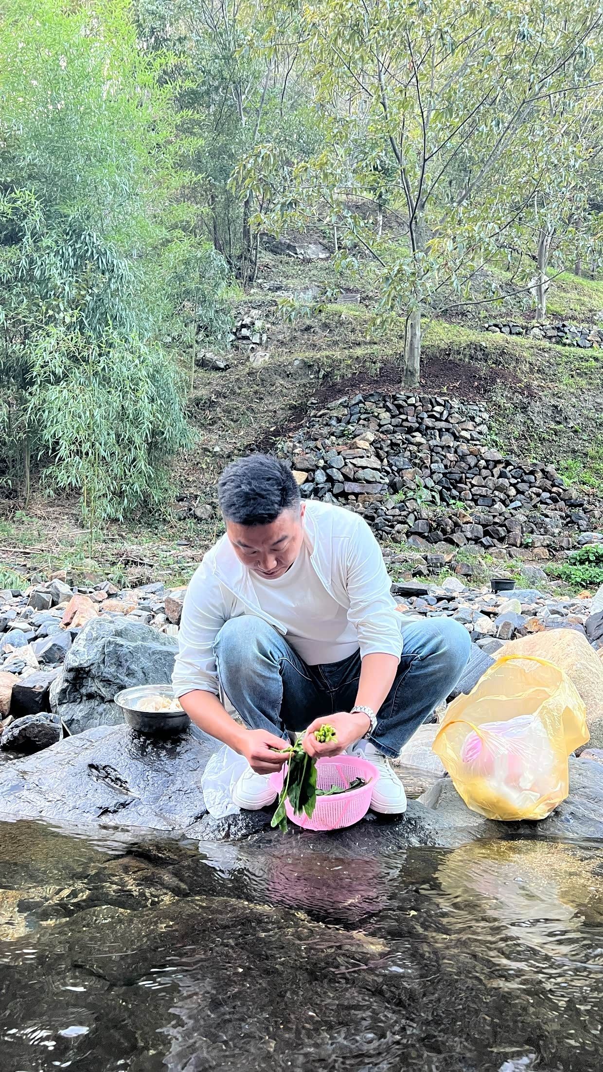 由于准备晚上露营在皖浙天路山顶,加上带的储水桶被扎了洞,装不了水了,索性的在山脚下找了条小溪,对带的菜进行天然无公害的清洗处理(文明露营,请随时带走垃圾,给其他人留下一片干净的环境,也体谅一下保洁人员的辛苦,做一个文明有素质的旅行者)