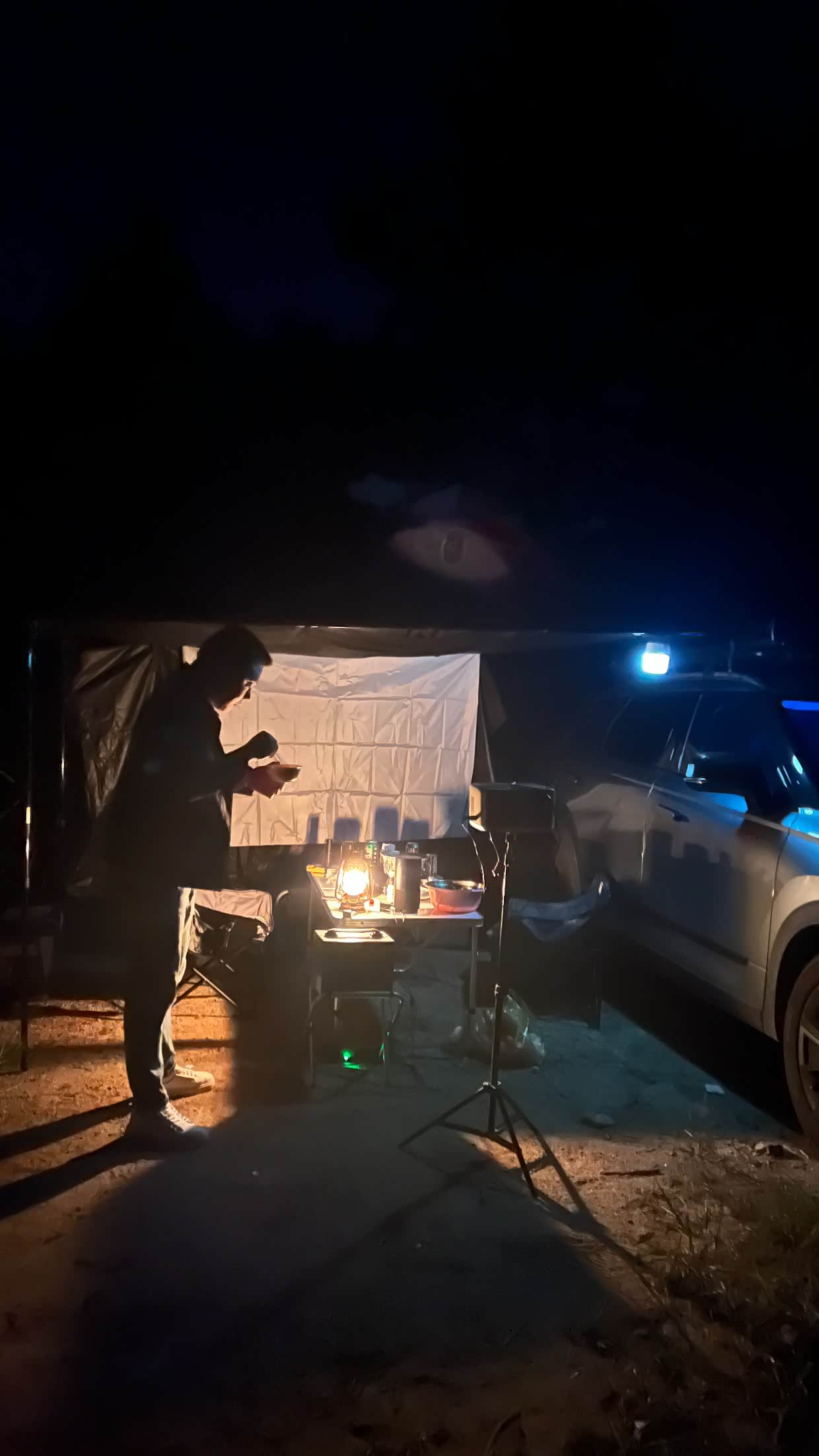 由于上山顶已经天黑,并没有拍上好看的图片,这步就省了,找了个离山顶不远且避风的地方露营下来,第二天早上再上山顶一看。