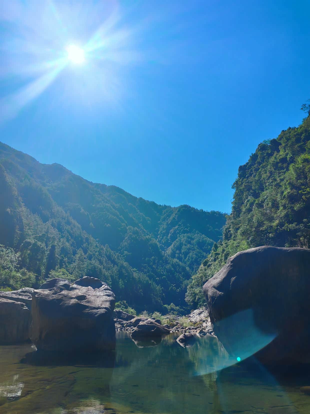 从临安上杭瑞高速到临安龙岗镇下高速,走330国道经浙江西大峡谷时一处秘境真是不错,夏天玩水的好地方,清澈见底的溪水,这个地方叫洪潭。