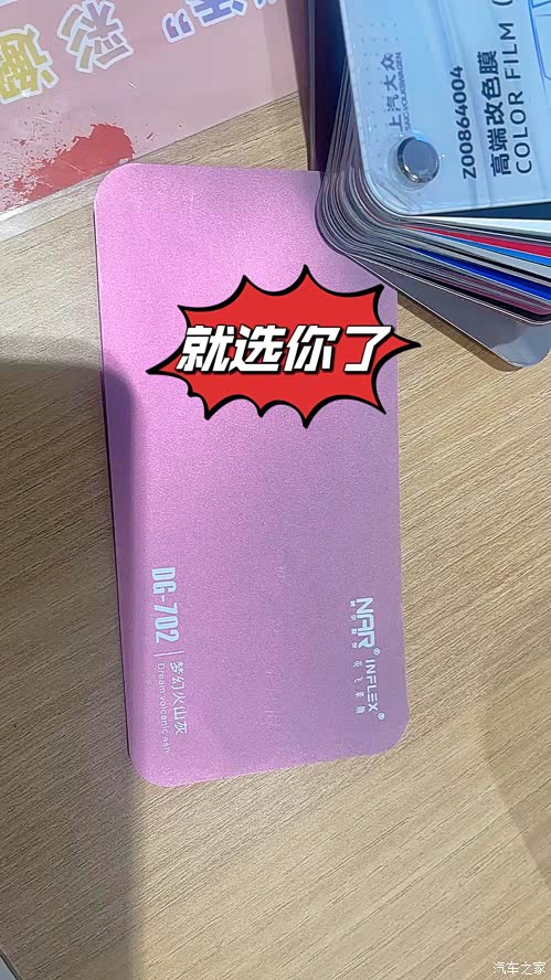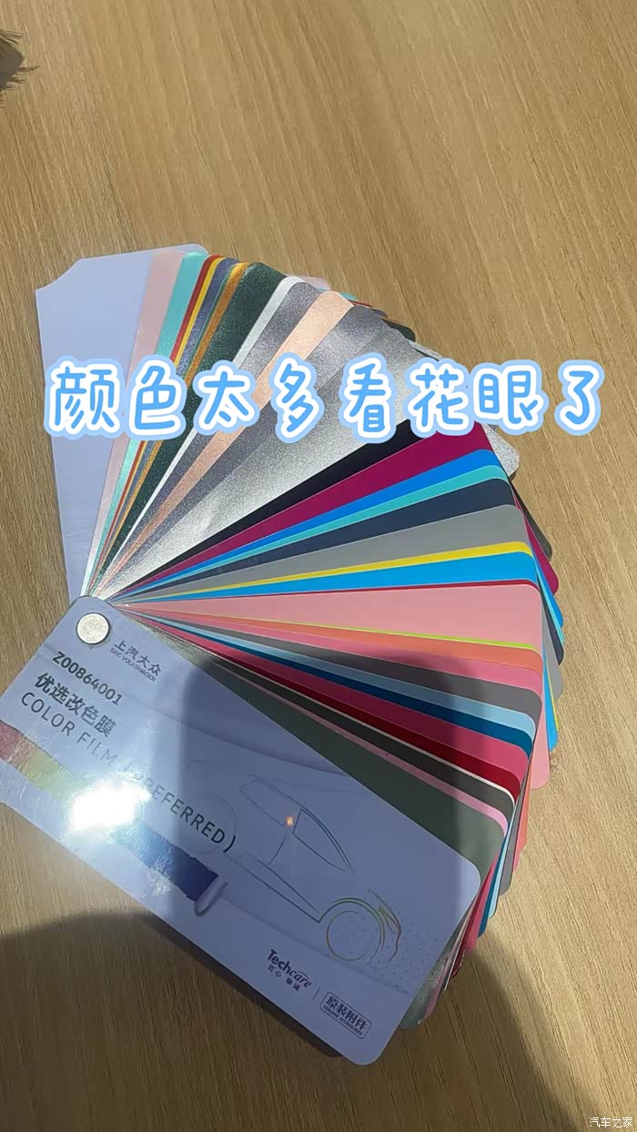 决定好贴膜了。现在选颜色又头大了。看的我眼花缭乱,不知道选什么好。原厂的膜分优选型和高端型,优选型的膜颜色比较普通,价格相对便宜点。高端膜就是现在市场上主流的改色膜,价格稍微贵一点。最后我选择了现在比较流行的梦幻火山灰。因为这个颜色从侧面看上去跟原车的冰岛银颜色相近。