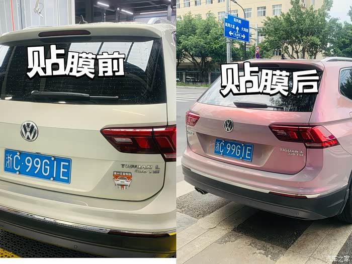 这效果怎么样?还可以吧!我这个颜色在温州途观L改色膜里应该是第一辆!开出去很拉风的😎拉风的同时也要记得去车管所去备案合法上路。