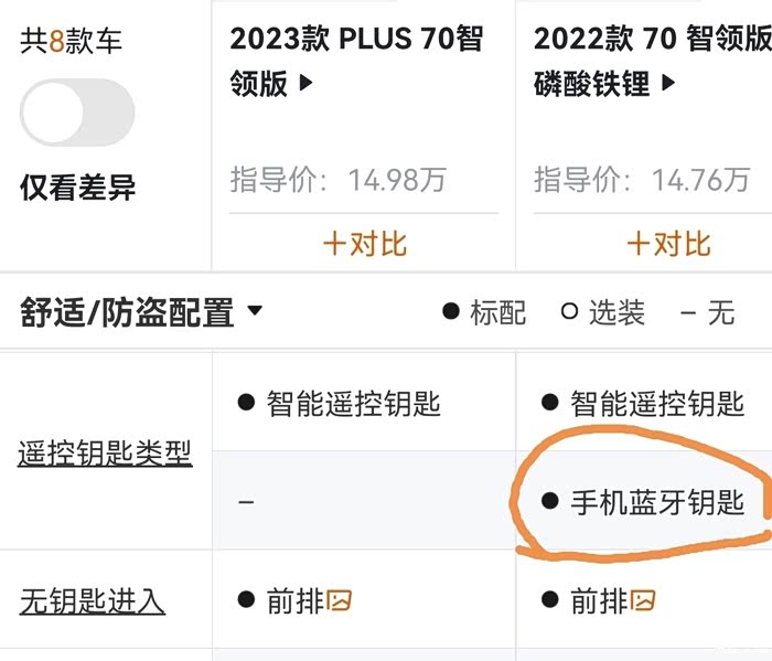 在 APP 里看到蓝牙钥匙这功能,很是实用。这个功能不需要每天都用,但是有时忘记带实体钥匙的时候应急就很实用。2022款的埃安y智领版都有蓝牙钥匙功能,为什么到了2023款的智领版减配了?不是 plus 吗?不是说要卷吗?这功能减配能省多少钱?